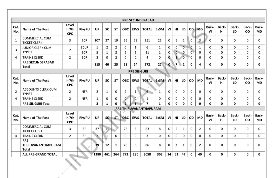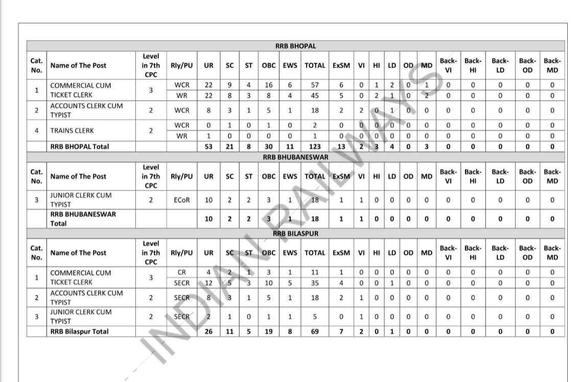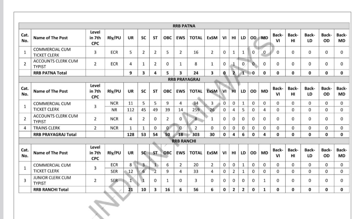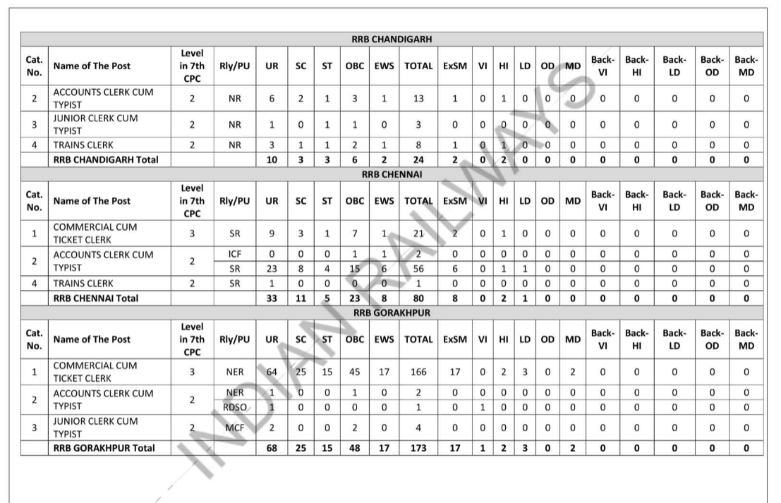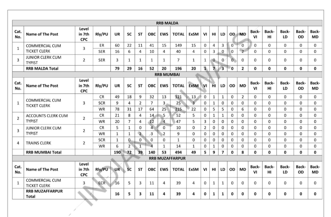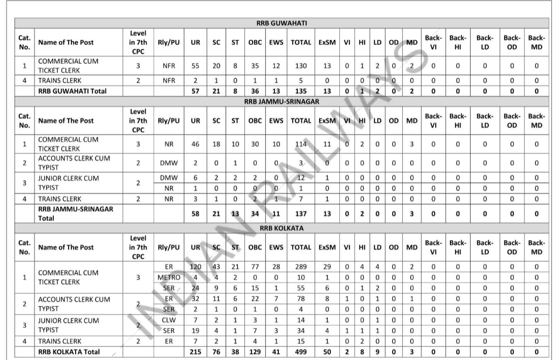 RRB Wise Vacancy Details