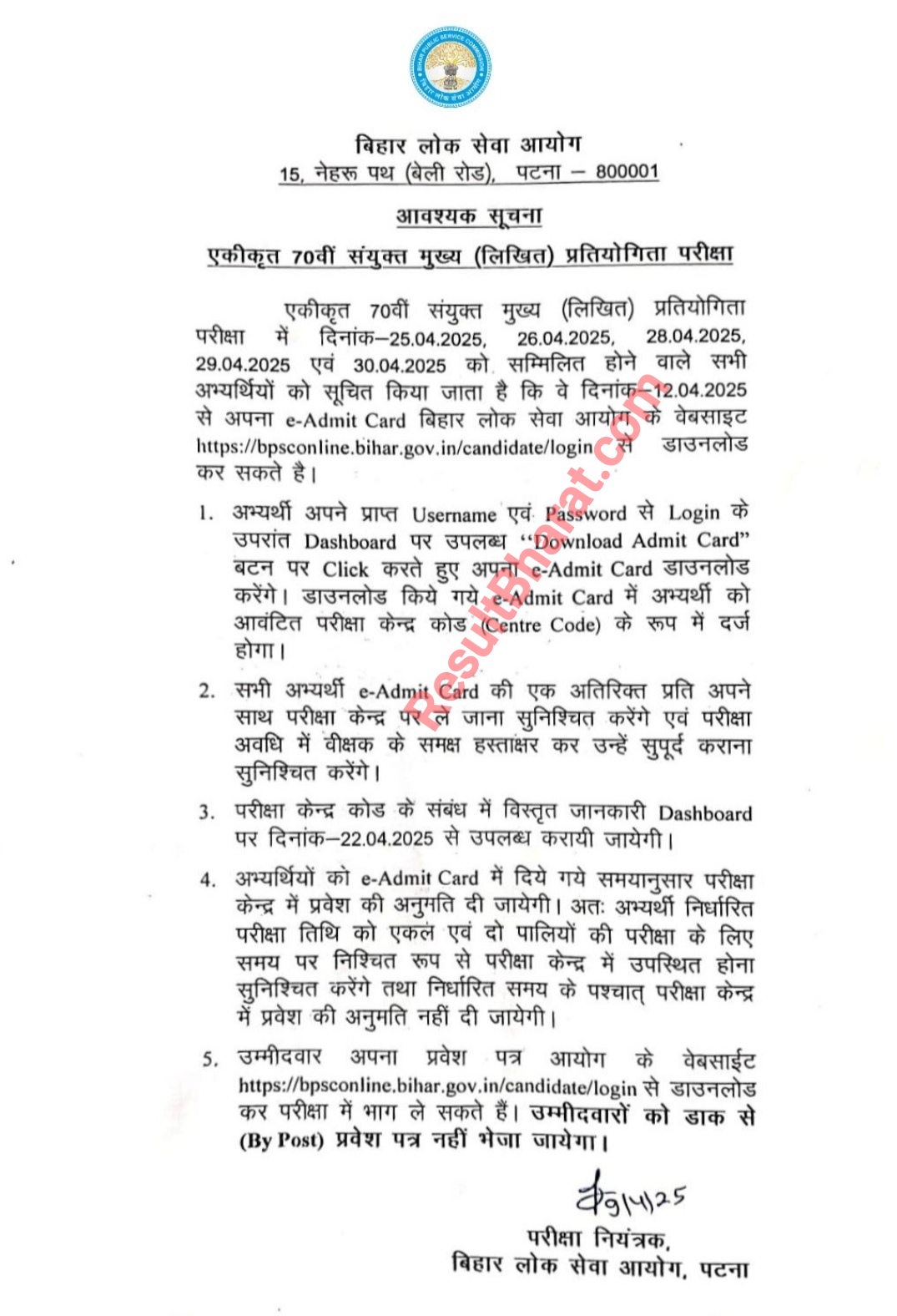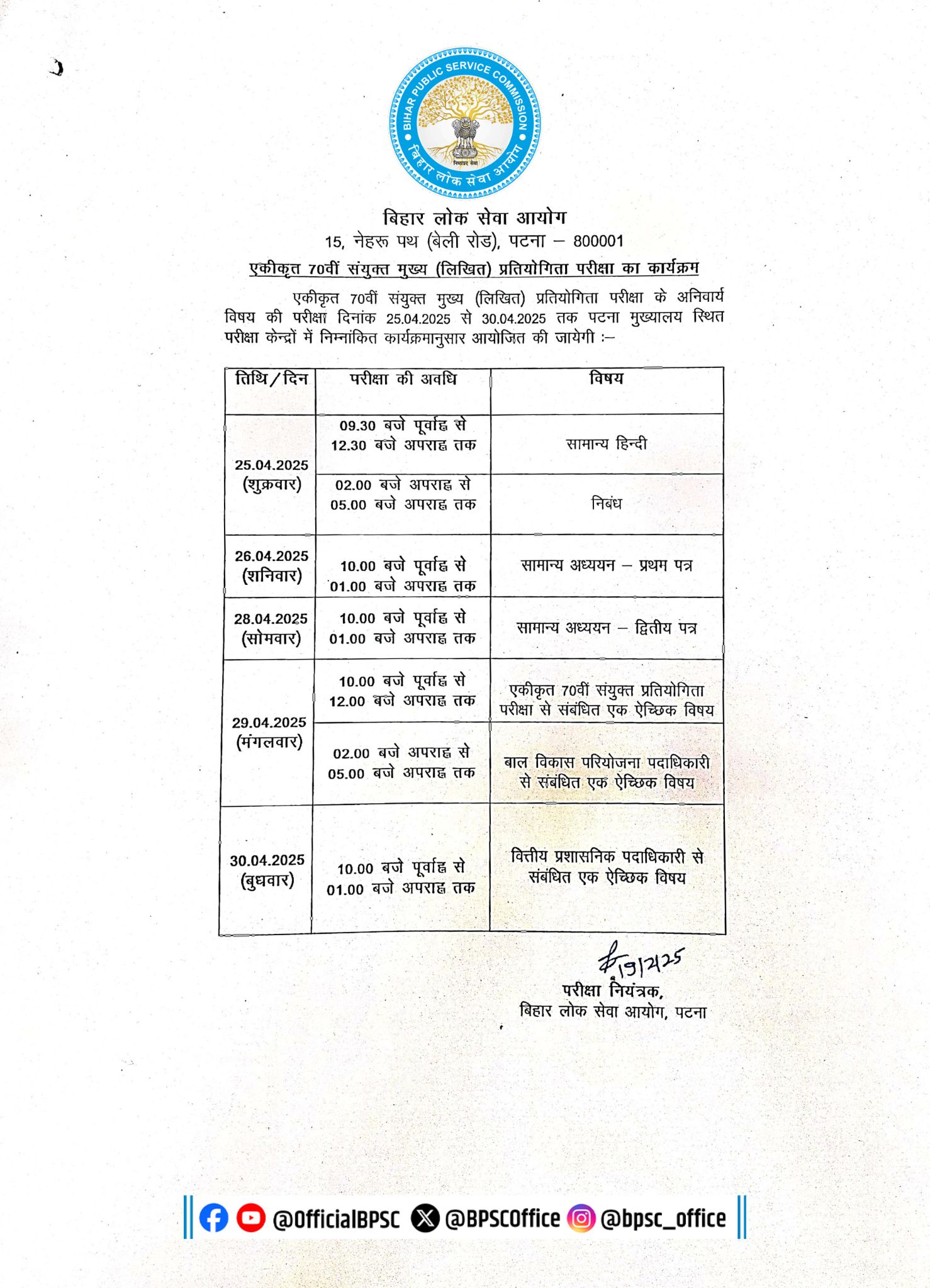All updates related to the BPSC 70th CCE will be posted on the official BPSC website.
