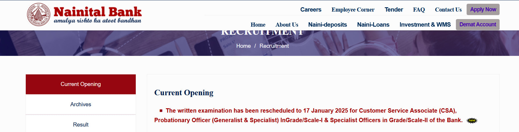 - Visit the official website of Nainital Bank at https://www.nainitalbank.co.in.
