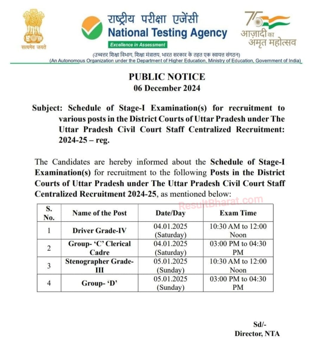 Uttar Pradesh Civil Court Staff Centralized Recruitment 2024-25, in the District Courts of UP
