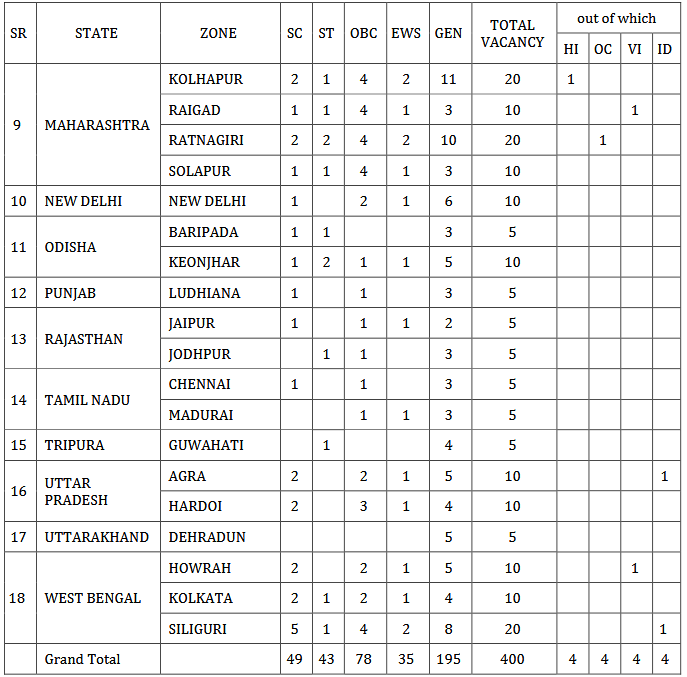 - Educational Qualification: Bachelor Degree in Any Stream from recognized university + Knowledge of Local Language.