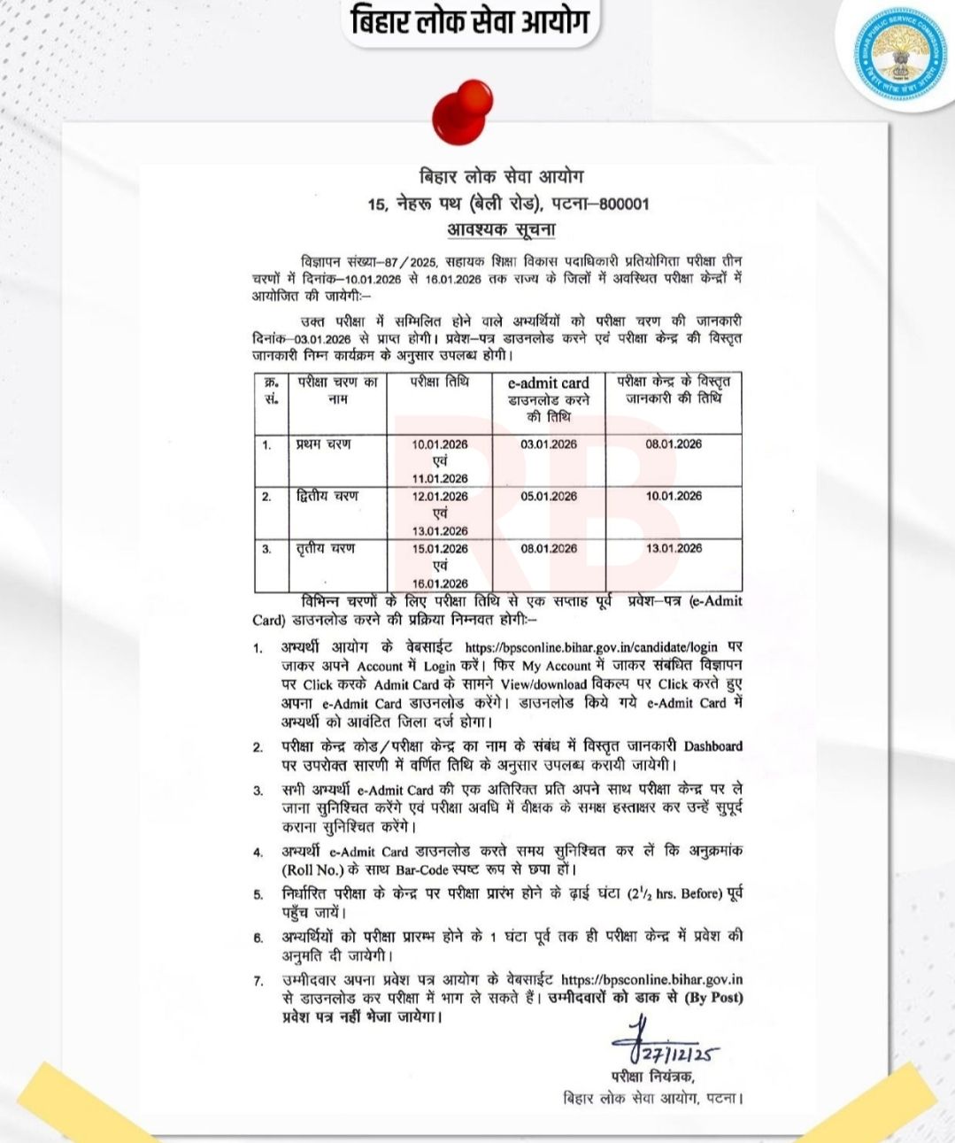 How to Download BPSC AEDO 2025 Exam Date/ Admit Card
