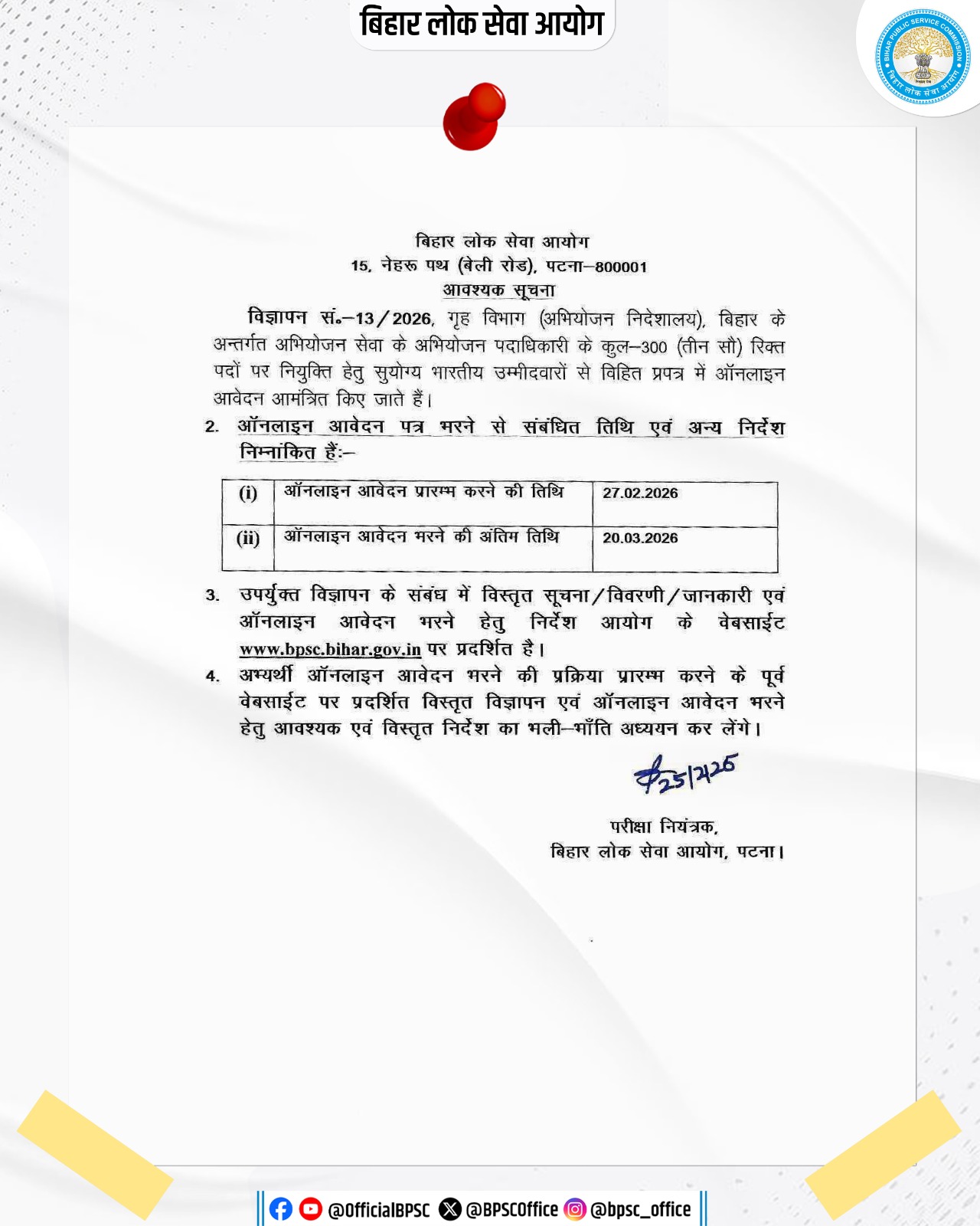 Note: Apply within the specified dates mentioned in the official notification. Verify all entered details before final submission. Contact the BPSC helpline for any technical or application-related issues.