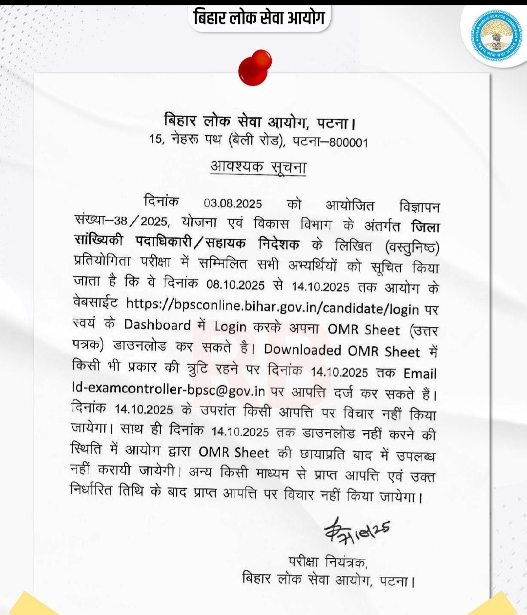 Official Website: https://bpsc.bihar.gov.in or https://bpsconline.bihar.gov.in