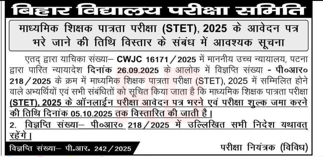 October 11, 2025, 12:00 PM IST: Bihar STET 2025 Admit Card Out is trending! Searches for "Bihar STET Admit Card Download 2025," "बिहार STET एडमिट कार्ड 2025," "STET Paper 1 Exam Oct 14," and "BSEB STET Result" are surging. Stay updated! #BiharSTET2025 #SarkariExam