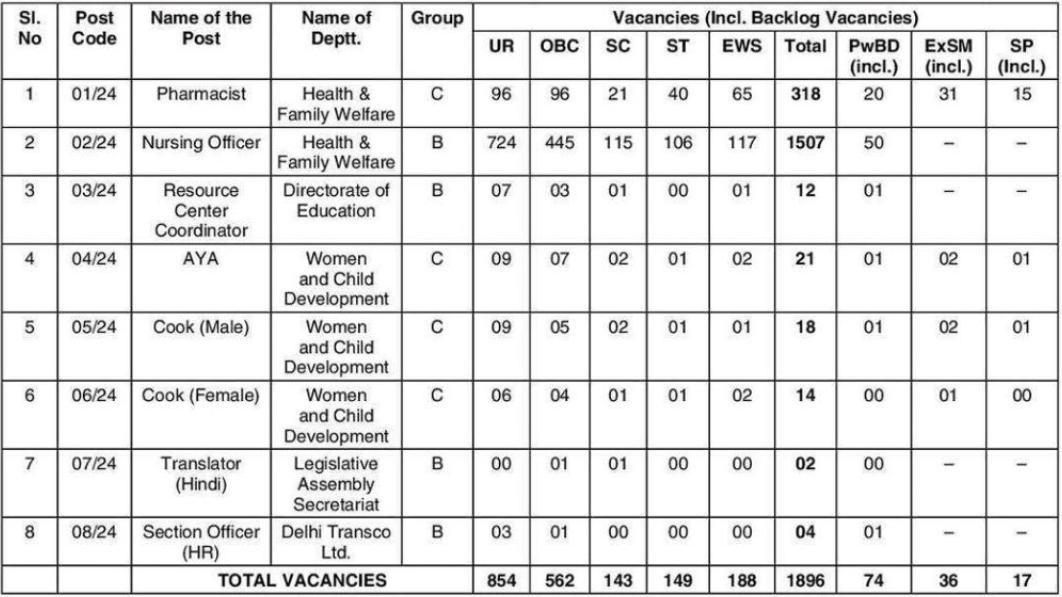 DSSSB Various Advertisement Recruitment Online Form 2024