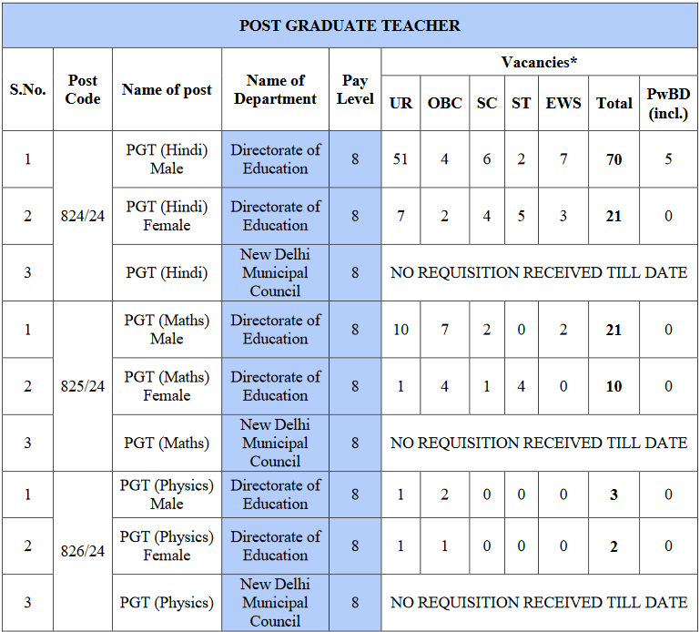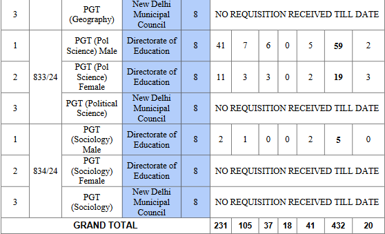 Delhi DSSSB Post Graduate Teacher PGT Recruitment Online Form 2025 for 432 Post