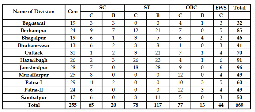 Begusarai, Berhamapur, Bhagalpur, Bhubaneshwar, Cuttack, Hazaribagh, Jamshedpur, Muzaffarpur, Patna - I, Patna - II, Sambalpur |