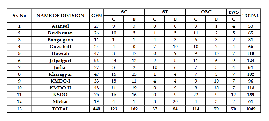 Asansol, Bardhaman, Bongaigaon, Guwahati, Howrah, Jalpaiguri, Jorhat, Kharagpur, Kolkata KSDO, Kolkata Metro - I, Kolkata Metro - II, Silchar |