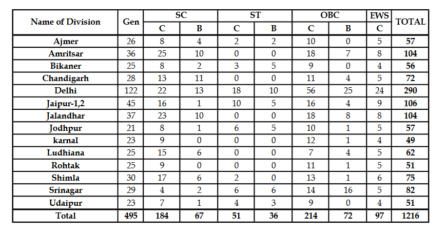 Ajmer, Amritsar, Bikaner, Chandigarh, Jaipur, Jalandhar, Jodhpur, Karnal, Ludhiyana, New Delhi, Rohtak, Shimla, Srinagar, Udaipur |