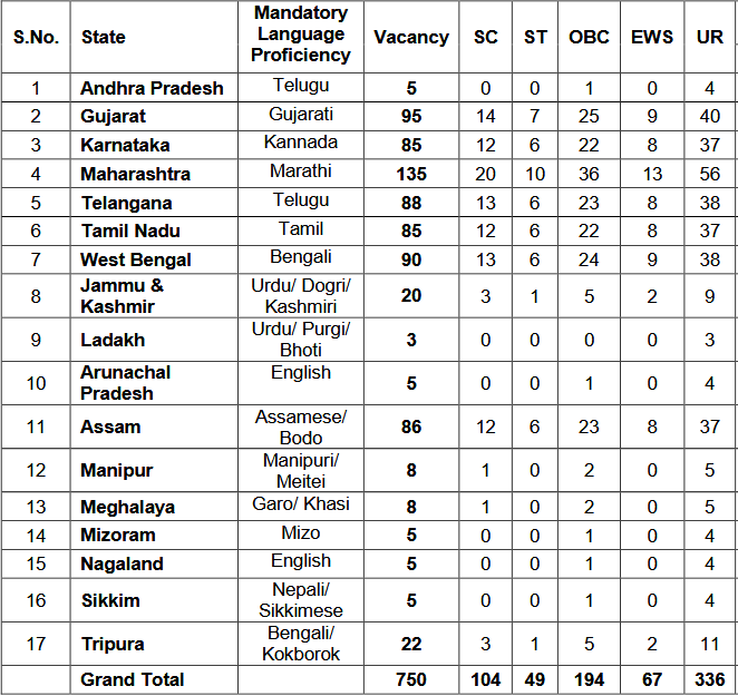 - Mode of Selection: Online Exam + Language Proficiency Test + Personal Interview