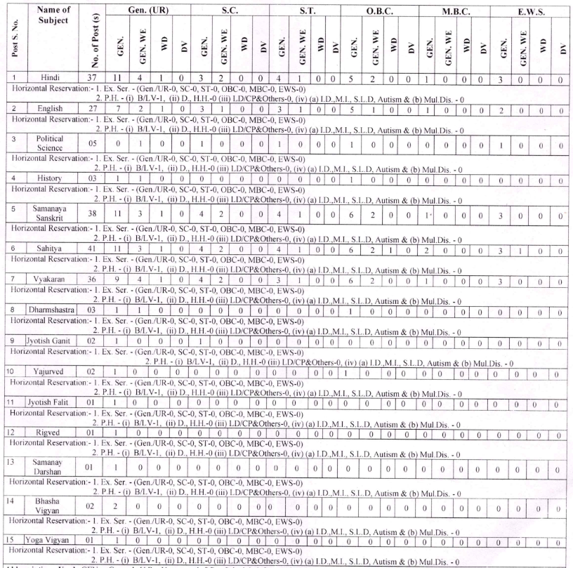 RPSC Asst. Professor Subject Wise Vacancy Details