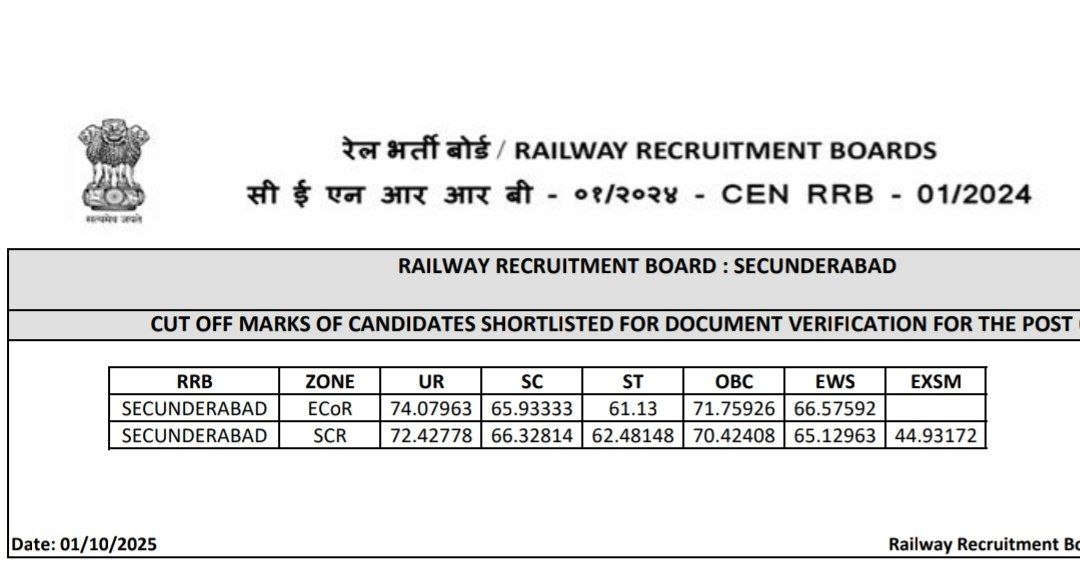 All RRB Wise ALP CBT-I Results/ Cutoff / Score Card 2025