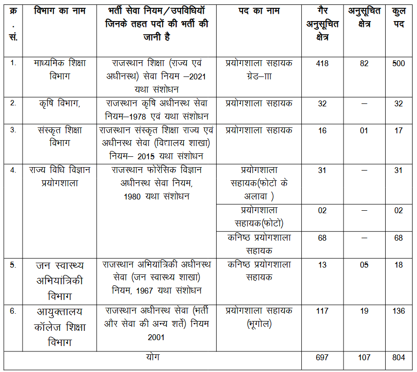 RSSB Lab Assistant 2026 Dept/ Area Wise Vacancy Details